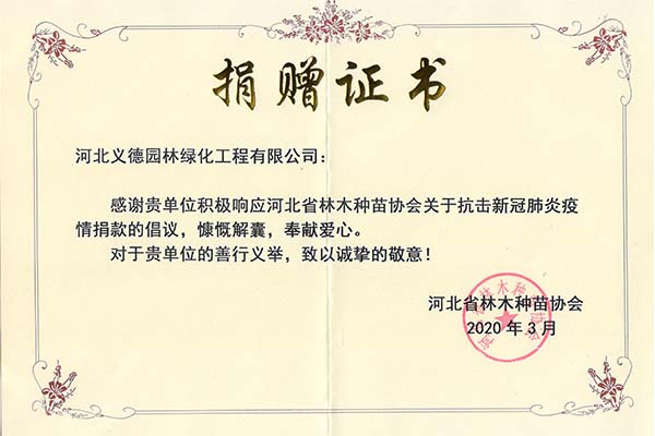 捐贈(zèng)證書