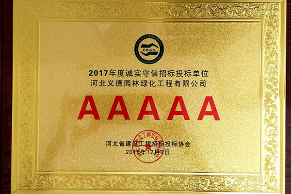 2017年度誠(chéng)實(shí)守信招標(biāo)投標(biāo)單位5A