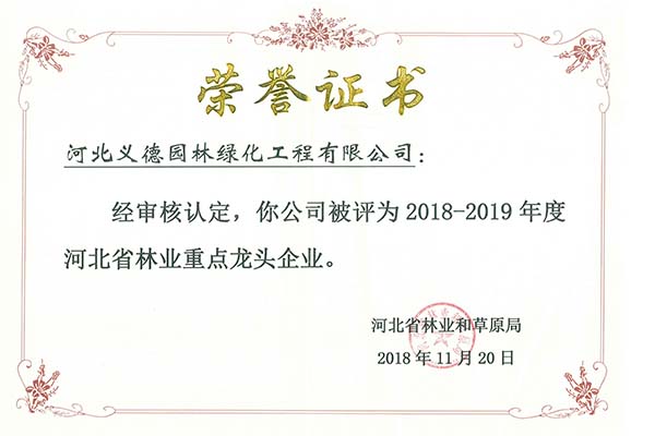 2018-2019年度河北省林業(yè)重點(diǎn)龍頭