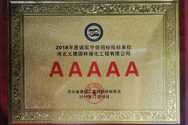 2018年度誠(chéng)實(shí)守信招標(biāo)投標(biāo)單位5A